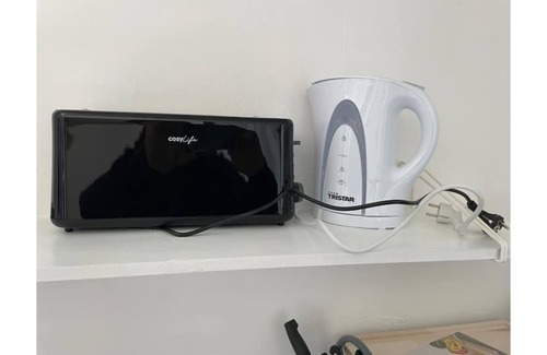 A living room and air conditioning are featured at this 1-bedroom, 1-bathroom rental. Bathroom amenities include a hair dryer, towels, and toilet paper. Prepare a home-cooked meal in the kitchen, complete with an oven, a stovetop, and a refrigerator, as well as a coffee maker, an electric kettle, and a microwave. And because there's a washing machine, you can go a bit lighter on your packing.