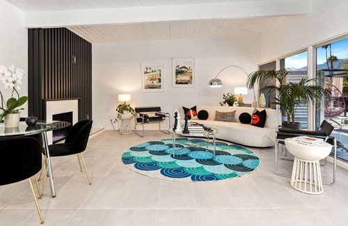 Enjoy a stylish experience at this centrally-located luxury home just minutes away from Downtown Palm Springs. Recently renovated from top to bottom, features all of the highest quality amenities to give your trip the experience you deserve. Featuring a large pool and fire pit, with more than enough seating and daybeds to accommodate any group of people. Take a quick drive or Uber to downtown to enjoy all of the amazing Palm Springs experiences easily!
