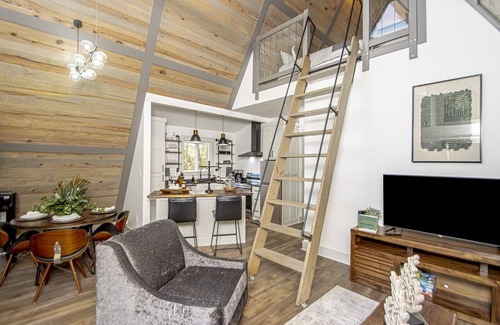 The Bridge House is a beautiful A Frame Tree House Chalet located at Nature's Loft. Nature's Loft is a remote resort near Gilbert Ar. and the Buffalo River. Nature's Loft is Natures Luxury. Nature's Loft offers luxurious accommodations in a remote private beautiful natural setting. The unique 45ft suspension bridge leads you to The Bridge House, a beautifully decorated modern tree house chalet. The Bridge House is equipped to offer a romantic getaway or some "Me Time" relaxation.
