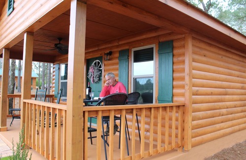 Our three new and cozy cabins are located on the Gulf Coast's premier Christmas Tree Farm, providing a unique lodging experience for travelers and vacationers alike. Our all-wood cabins sleep up to six with two bedrooms and a pull-out sofa bed, a fully-equipped kitchen, and living room/dining area complete with 2TV,'s ( 1 TV in living room and 1 TV located in one of the bed rooms) ( Wi-Fi, a nice front porch looking out on the gorgeous Christmas tree farm. We are located in the country in central Baldwin County near Fish River, 8 miles east of Fairhope, Al and Mobile Bay, and 15 miles north of the Gulf of Mexico and the resort towns of Gulf Shores and Orange Beach.