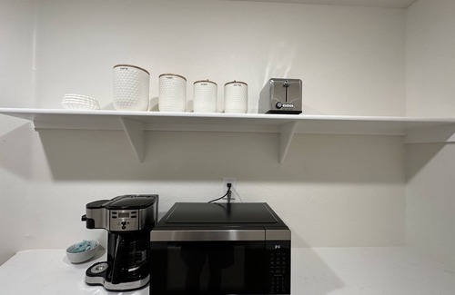 The kitchen comes stocked with anything you should need along with a dishwasher, oven/stove unit, microwave, and fridge/freezer. The laundry room is complete with a full size washer and dryer and plenty of supplies like an iron and ironing board. Both full bathrooms come stocked with hair dryers as well.