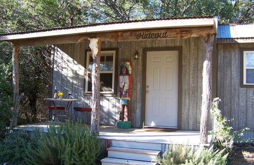 The Hideout is a quaint, cozy tiny house/cabin at Round Mountain Ranch is located in Leander. The Hideout is a quaint, cozy tiny house/cabin at Round Mountain Ranch provides accommodation, featuring Air Conditioner, Security/Safety, Fireplace/Heating, among other amenities. This Cabin features Air Conditioner, Security/Safety, Fireplace/Heating, to make your stay a comfortable one.