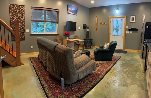 The LTC, a cozy cabin in the woods! This one bedroom cabin with a full kitchen and bathroom sleeps 4 comfortably. Enjoy the flat screen Tv with dvd player and or wifi. The LTC is a great place to relax after a long day skiing or hiking. Also, a great place to hang out for the day while enjoying the great outdoors of Glacier, Mt. Baker ski area and the Mt. Baker/Snoqualmie national forest. Just a 1/4 mile from Glacier you can wonder through the woods to town where you will find Grahams store, 2 restaurants, The Wake and bakery, and The Glacier ski shop. We are also just 17 miles from the Mt. Baker ski area.