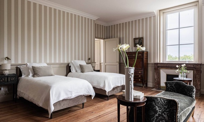 Located on the first floor of the house, this 68m2 suite is bright and soothing. With its natural colors and refined decoration, it can accommodate up to four people (a king size bed and two single beds).