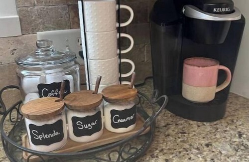 We’ve added a little extra Southern charm to your stay with a welcome basket filled with sweet and salty snacks, bottled water, and a bottle of wine. You’ll also find a Keurig and tea kettle, plus a fully stocked coffee/tea bar to help you ease into your mornings.