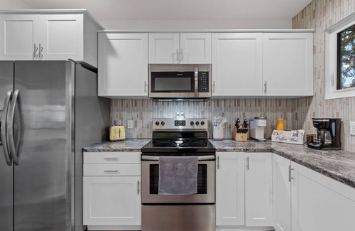 - Fully equipped kitchen with modern appliances for all your cooking needs. - - Staples like salt& pepper, oil and basic seasonings provided.