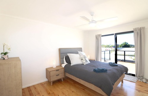 All three upstairs bedrooms have stunning ocean views. The master includes a queen bed with ensuite. The second bedroom also has a queen bed and ocean views. The third bedroom has 2 x single beds. There is a second bathroom upstairs and separate laundry with extra storage.
