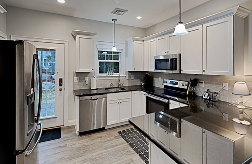 • This fully air conditioned, comfortable home is one level living featuring a wide-open dining room, living room and well-equipped kitchen including both a drip coffee maker and a keurig coffee pot, making it easy for everyone to be together. There are also two large bedrooms, a fully stocked kitchen and one spacious bathroom.