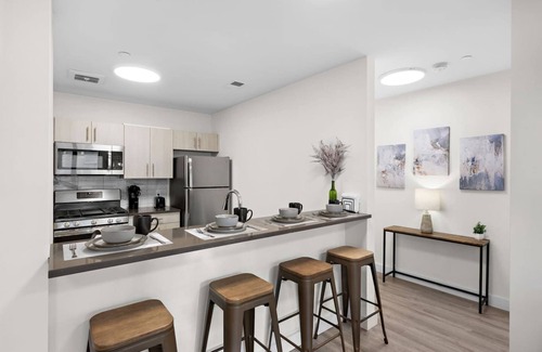 Welcome to this luxury to 2BR 2 Bath apt. Centrally located to all major highways and airport. The unit is complete with amenities such as free parking with EV charger and fitness center . Guests will enjoy a spacious luxury apt, with a great atmosphere. The surrounding area is ideal with local grocery and restaurants all within walking distance. Convenient walk to train station for NYC travel. Whether for business or leisure this versatile space will be perfect.