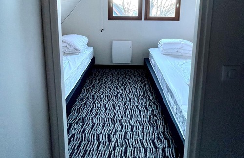 ETAGE : 4 chambres : 2 chambres avec 4 lits superposés (90cm*200 cm) (8pax) + 1 chambre avec 3 lits (3pax) + 1 chambre avec 2 lits (2pax).