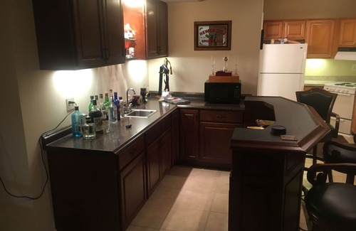 That’s right – take advantage of a completely private waterfront Lake Anna setting, with 6 bedrooms, 5.5 baths (3 master suites with private bath, 1 King with private detached full bath, and 2 bedroom suites share a bathroom), a lower-level wet bar with poker table, 65” large screen TV, a full kitchen, and a full bath. Enjoy the gas fire pit on the lower level deck just outside of the bar area and other features. This is a very well stocked modern home that features a large gourmet state-of-the-art main floor kitchen with all of the amenities including granite countertops, a large island, dual sinks, dual ovens, six-burner Jenn-Air gas stovetop, a glass cook surface, dishwasher, Keurig and regular coffee makers, and a super large refrigerator and separate full size freezer to easily hold ALL of your refrigerator/freezer items. If this fabulous kitchen isn’t quite enough for your culinary needs, then enjoy our second full and complete kitchen in the lower level next to the wet bar. If cooking outside is your preference, enjoy your favorites with some great gas grill BBQ’ing using a huge grill on the deck right outside the main floor kitchen door, or if you really want to enjoy the outside with lake shore BBQ’ing, then take advantage of our HUGE charcoal/wood burning ‘Cowboy Cauldron’ for grilling your steaks, chicken, shrimp, hamburgers, hotdogs, veggies, etc. on a cooking surface large enough to feed the masses! The options are endless. You can also enjoy the Cauldron as your lakeside "fire pit" for your evening get-togethers for socializing and making memories! Revel in the peaceful tranquility of the water, watch birds, ducks, and many of the other wonders of nature from the boathouse and deck on the water. There’s also great fishing off the dock...catch bass, catfish, blue gill, etc., clean them on our outdoor filet station and grill your catch on the lakeside cauldron!