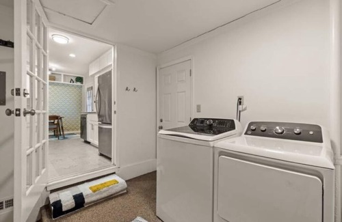Washer and dryer with soap available for a few washes if needed as well as an iron. There is a small vacuum. mop and broom here. This room is just off of the Kitchen and located inside the home. Cornhole stored in laundry room.