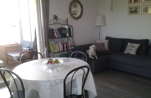 Rent T2 apartment that can accommodate 4 people, on the first floor of a small residence with its private parking and located 50 m from the beach and the first shops 10 minutes walk from the center and the marine lake.