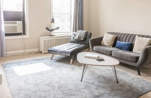 Steps away from Lake Michigan? Perched on the edge of Jackson Park? Plush accommodations in a historical building? Why, yes—all that and more. When you choose to stay in this one-bedroom apartment, prepare to enjoy a full kitchen, homey living room, and luxurious queen bed. Plus with that wide-screen TV, take the night off to rewatch your favorite flick (don’t forget the popcorn).