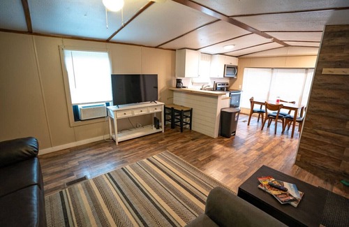 This Unit is supplied with a cozy living room, a stocked kitchen, as well as 2 bedrooms with 2 queen beds and 2 twin beds, as well as a pull-out couch. It also has 1 bathroom with a new walk-in tile shower! All furnishings are brand new in this unit (extremely comfortable bedding). Our property has adequate parking for all guests and trailers for Atv’s.