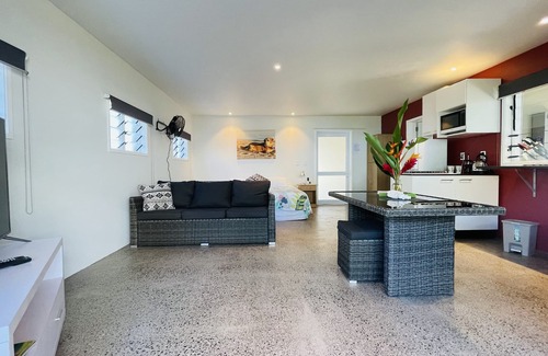 Book now to secure your Studio in paradise ! Modern with air con and full kitchen with fridge freezer, microwave, gas cook top, BBQ area outside with couch, barstools and table. Wet floor shower and comfy super king bed!