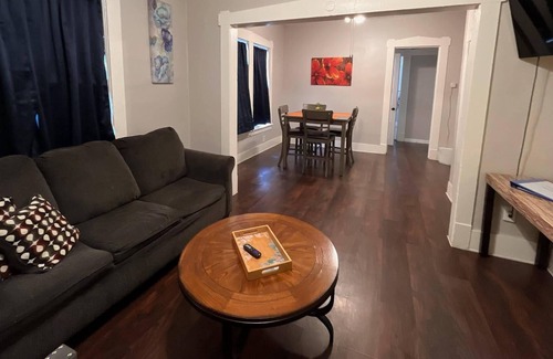 Classy second floor one bedroom apartment in Mid-town medical district. Recently renovated and furnished with cozy bed, sofa and chairs. SmartTV with streaming apps pre-installed for you to use. Large and bright kitchen. Ceiling fan in the bedroom. Gas heat and window AC. Windows on three sides of the unit means great airflow for those perfect spring days and summer evenings. Rear door access to semi private balcony area.