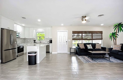 Welcome to Venice Paradise: 3BR/2BA HEATED POOL & Mini Putt, a newly renovated retreat designed for comfort, relaxation, and adventure. This spacious 3-bedroom, 2-bathroom home comfortably accommodates up to 10 guests with a thoughtful layout perfect for families and groups. Sleeping arrangements include 1 king, 2 queens, and 2 twin bunk beds, giving everyone their own cozy spot to recharge.