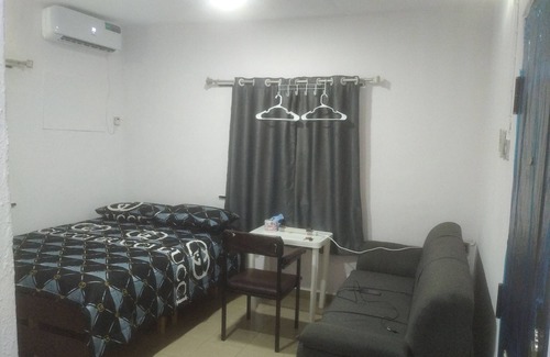 is a 2 room well furnish. a very neat and quiet place with security with water heater washing machine. iron & board. with equip kitchen fully furnish. and free parking space.pet are allowed. with free internet.with balcony. and working space.