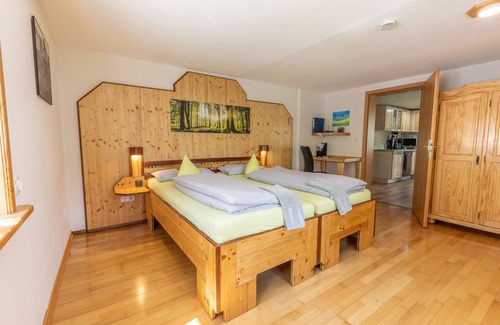 In a former farmhouse, we have been offering an individually and lovingly furnished and very well-kept apartment for guests seeking peace and quiet since September 2017. The apartment is on the ground floor, no stairs. The house is at the end of a road at the edge of the forest and is the ideal starting point for hikes, bike and motorcycle tours. A lot of information is available up to guided mountain bike tours, everything is possible. There is a locked garage for bicycles and motorbikes, and e-bikes can also be charged there. There are also tools for repairs.