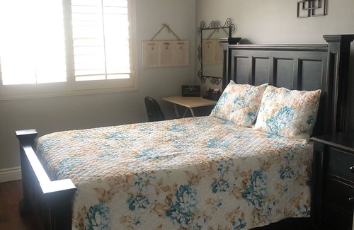 My home has a modern decor and is tidy. You will enjoy having a comfortable room full size bed. You'll have your own personal fresh clean towels, extra linens and blankets if needed. Your room is private and cozy with an adjacent bathroom that will be shared with only one other person. That bathroom was recently remodeled. I also provide toilet seat covers for extra hygiene. You will also have a TV, small fridge, ceiling fan, over-door mirror, iron board, iron, hair dryer, hangers, extra blankets & lamp. If you’re here for business you also have a desk & chair for a comfortable workspace. Your room door has a lock key for privacy and a drawer with key safe inside the walk in closet for your valuables.